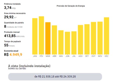 E é por isso que quando for analisar uma proposta, e sobretudo comparar todas as propostas recebidas para seu projeto de energia solar, não deve focar em economia, mas sim em geração média mensal.