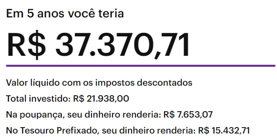 Investir R$ 21.938,00 no tesouro Prefixado renderia R$ 15.432,71 em 60 meses;