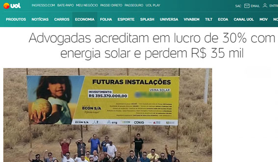 Hoje “vendem” o setor da energia solar do mesmo modo como “vendem” as pirâmides financeiras: